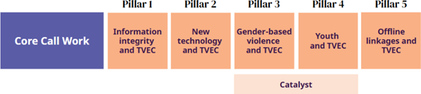Catalyst is a scalable consortium project tackling online misogyny and technology-facilitated gender-based violence (TFGBV) as pathways to radicalisation and violent extremism. It is delivered by the Christchurch Call Foundation (CCF) and our specialist Consortium: the Institute for Strategic Dialogue (ISD), Search for Common Ground (SFCG),Meedan, and the Polarization & Extremism Research & Innovation Lab (PERIL).